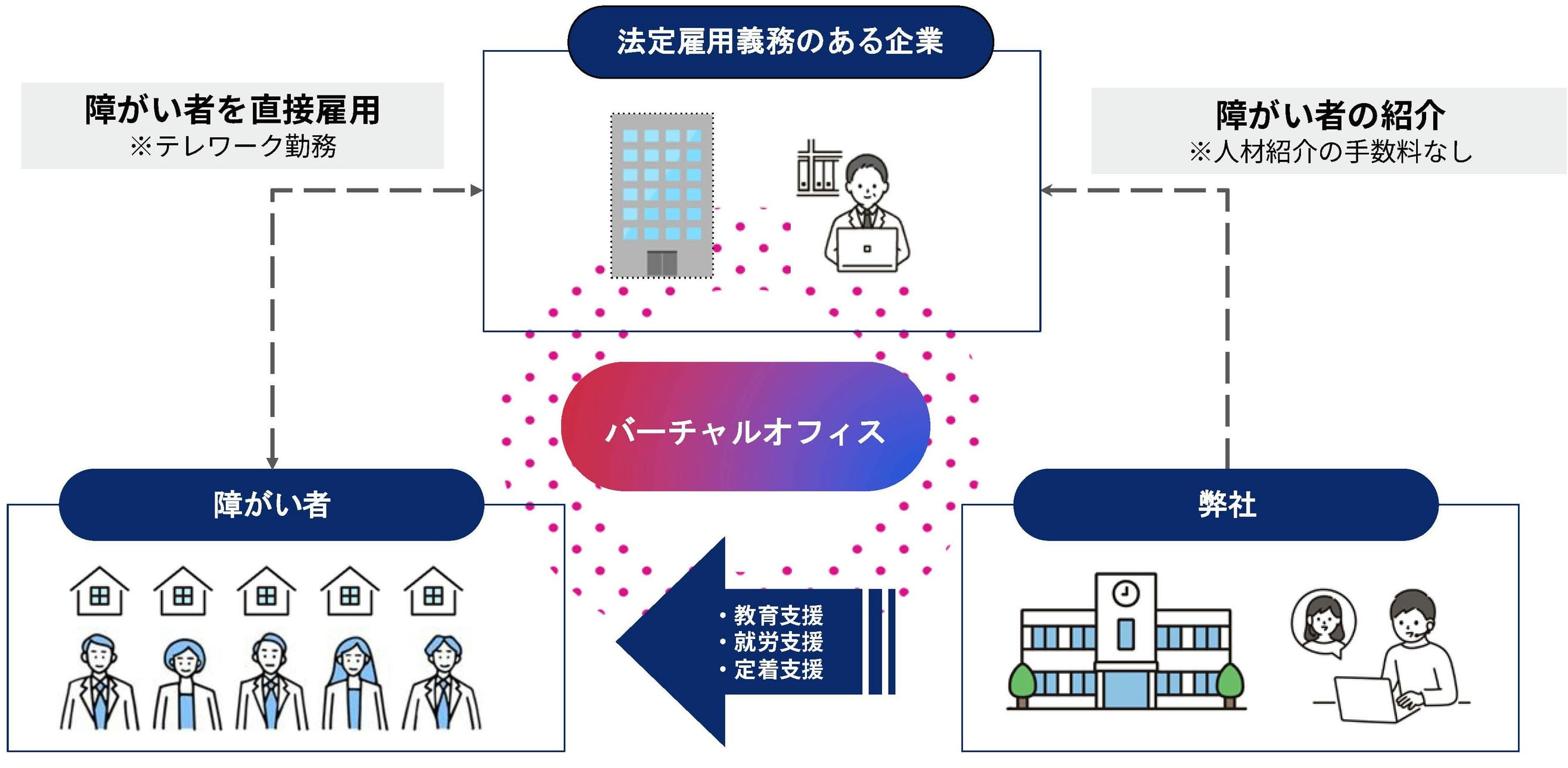 就労支援施設事業で培ったノウハウと日本初の障がい者向けオンライン教育により持続的な障がい者雇用を実現します。